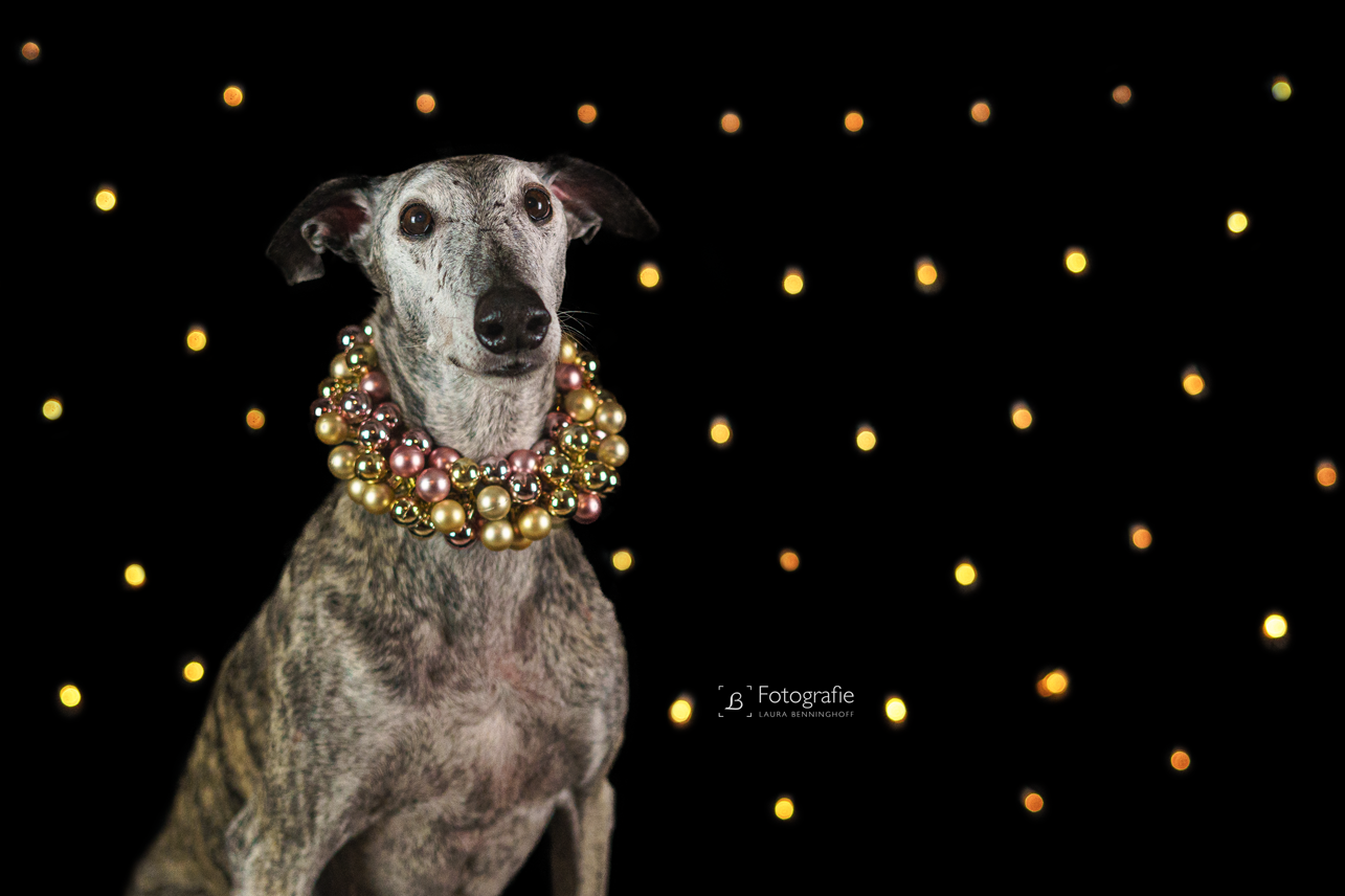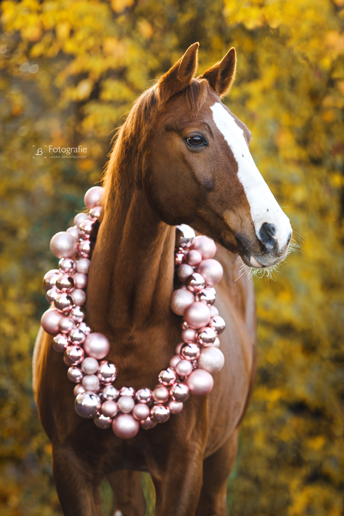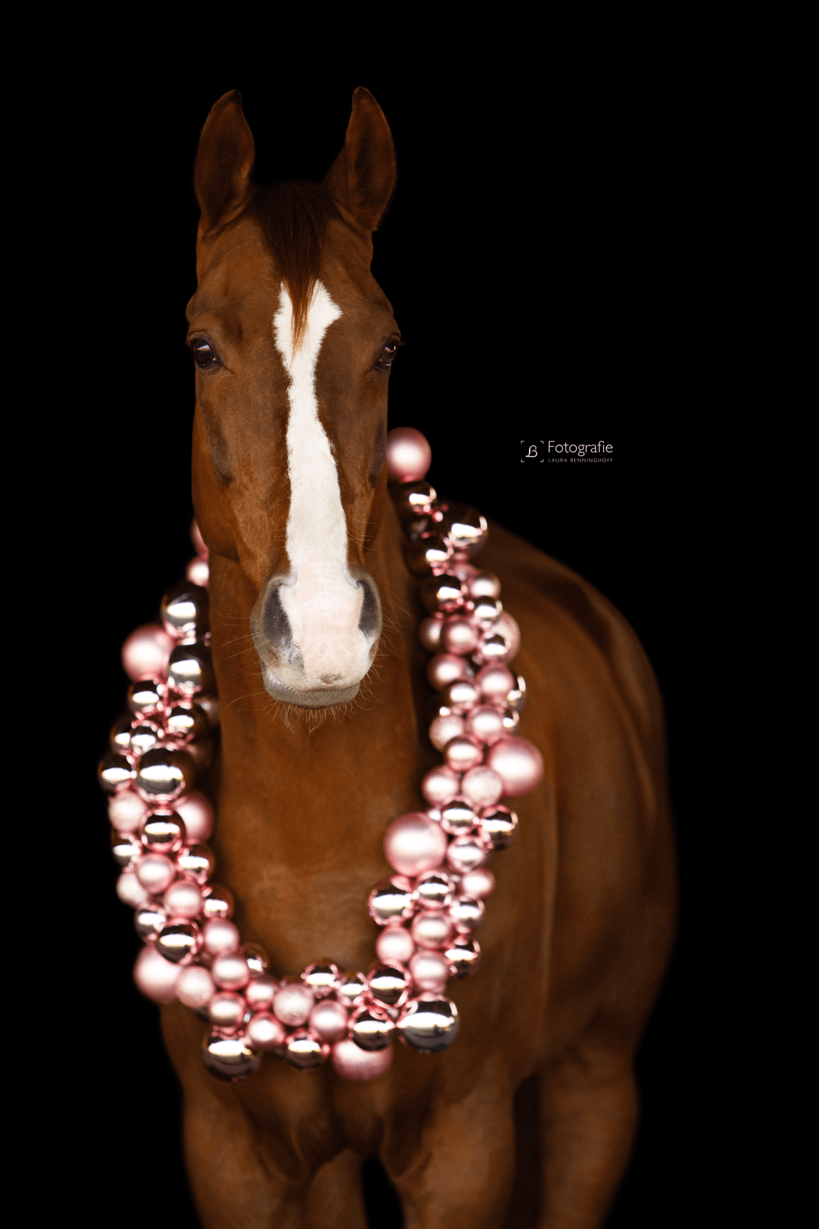 Ich habe für Pferde beispielsweise verschiedene Halskränze und auch kleine Weihnachtsmützen für die Ohren, für Hunde ebenso Halskränze oder ein Hintergrundset.